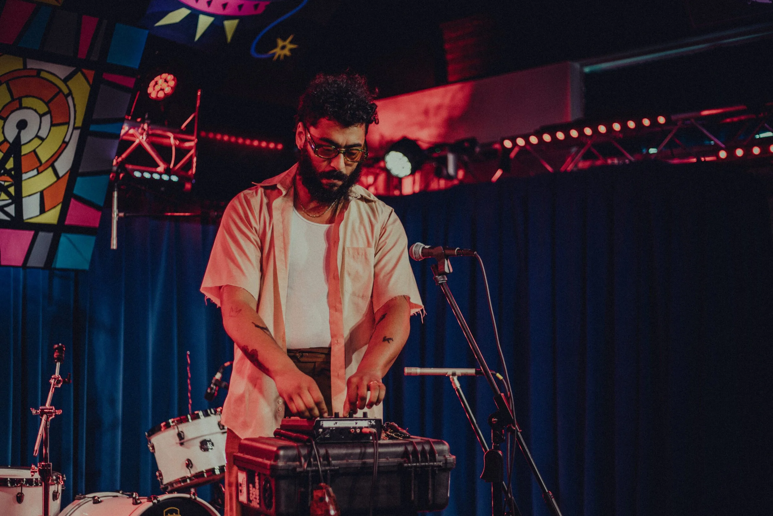 When Ferreira finally took the stage, the crowd became much quieter, and we eagerly awaited the opening to the set. In a bold move, Ferreira mostly strayed away from his decade plus long discography, and performed mostly from his latest album, which had only released days before this performance. However, this proved to be an excellent decision, as Ferreira gave us impassioned and captivating performances of new and inventive songs of his. Songs like "47 rockets taped to my chair (for dr. refaat alareer)" echoed through the audience and reverberated through our heads all night. “Bang, bang! Goes the blacksmith’s hammer again! Bang, bang!” In between cuts from the latest record, however, he did sprinkle a few fan favorites from his record Purple Moonlight Pages, like "CYCLES" and "LEAVING HELL."