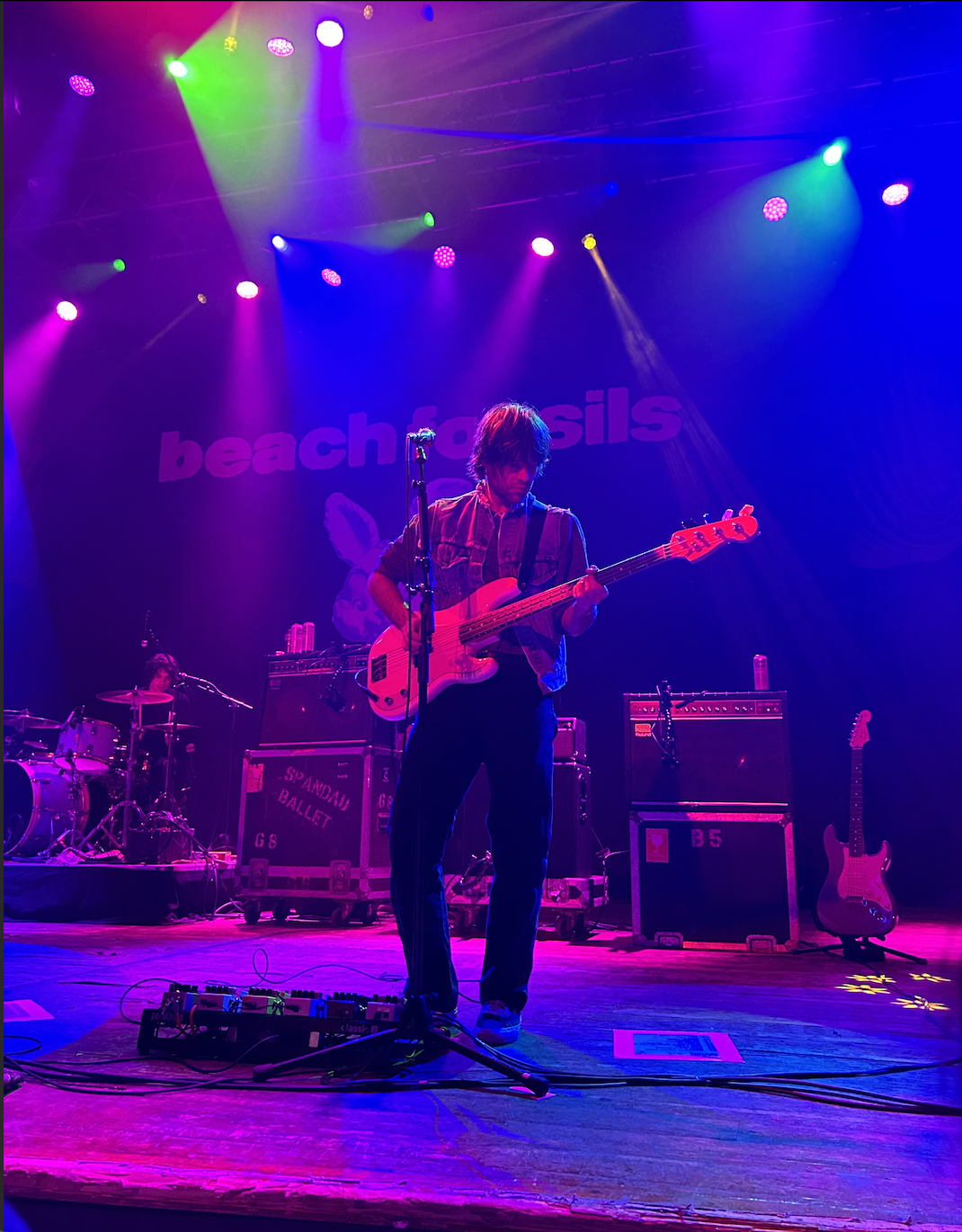 At House of Blues this past Sunday, April 7th, fans trickled into the classically-designed venue to see Beach Fossils take the stage. It was their second time returning to North America with 2023 album Bunny, which secured the band their first Grammy, rightfully so. Frontman Dustin Payseur formed Beach Fossils in 2009 after moving to NYC to pursue his interests in music. He is now joined by Tommy Davidson on guitar, Jack Doyle Smith on bass, and Anton Hoccheim on drums making a hit dreamy indie-Lofi-rock DIY masterpiece.