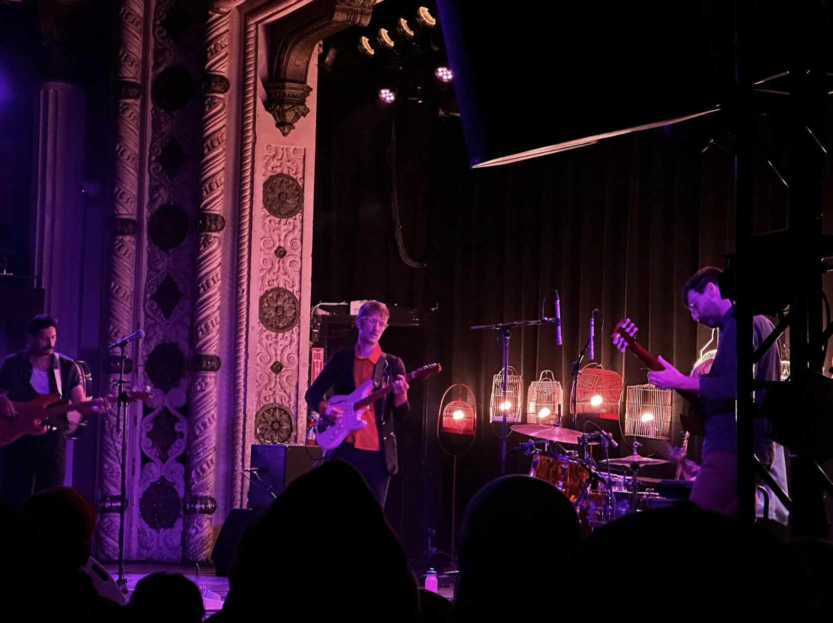 Before the opening act, Metro fills slowly with people buying drinks, meeting up with friends at their reserved seating, and grabbing a good view, as most of the venue is standing general admission. The empty stage is dressed with many instruments that will later fill the room with sound and lit by a dark blue light, as miscellaneous-sized bird cages with single light bulbs inside line the back of the stage.