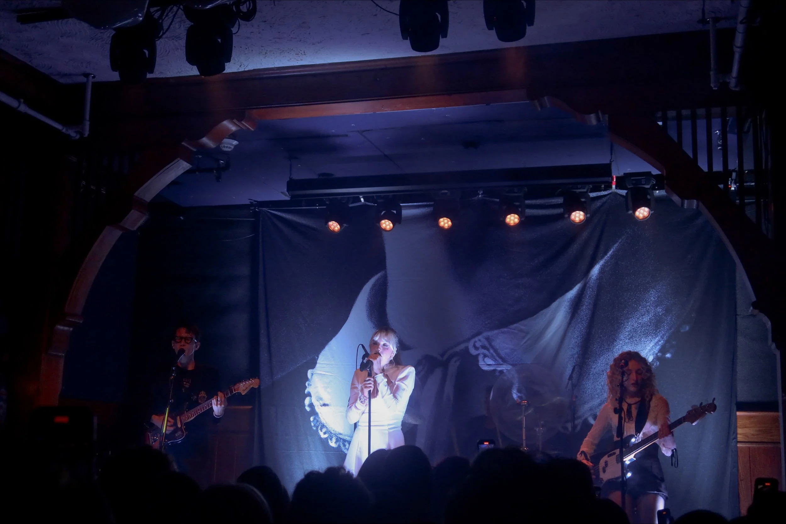 Guitarist Lee Newell formally introduced the band, consisting of Lola Colette on bass, Puma on drums, and of course, “the belle of the ball,” Paige Turner. And the belle she truly was. Donning an ethereal, white mini dress, Turner’s presence was captivating, locking eyes with concertgoers as lyrics left her lips. Beyond the audience, she would float across the stage, sharing moments with each band member throughout the performance.